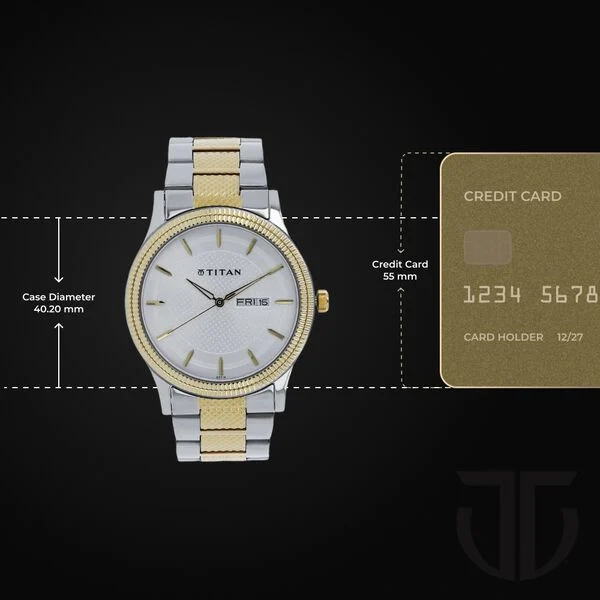 Redefine your formal and everyday style with the Titan Quartz Analog Day & Date Silver Dial Two-Toned Stainless Steel Strap Watch for Men.